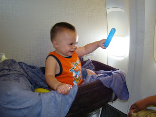 Our flight from Cebu to Korea was early in the morning (12:30 am) and since it's past our bedtime the kids especially Aaron was having a hard time on the first flight. He was so tired that he was fighting going to sleep. By the time we arrived in Korea it was day time already so we just let them play and play until they ran out of their energy..:)